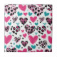 A bold and playful seamless heart pattern ceramic tile featuring glossy black hearts, vibrant pink hearts with trendy leopard print accents, and fresh teal heart details on a clean white background. This modern love-themed design blends fun animal print with romantic elements, creating a striking and fashionable aesthetic.