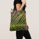 Esta Tote Bag apresenta um abstrato original, trabalho de arte por ZoeSPEAK, feito a partir de uma fotografia original de um amante de palma da reclinata. O sol forte da Flórida destaca as folhas, que crescem a partir da coluna como listras em linhas diagonais. O gramado, em foco suave, forma o fundo verde.