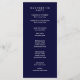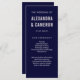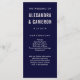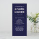 Este programa de casamento moderno apresenta um texto cor-de-rosa pincelado sobre um fundo azul marinho.