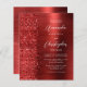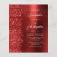 A borda esquerda deste elegante convite de casamento moderno apresenta uma borda falsa vermelha. O texto personalizável combina manuscrito branco, fontes em copperplate e itálico em um fundo vermelho de metal escovado. O verso fornece espaço para detalhes do casamento em um fundo de metal escovado vermelho, junto com um código QR que os convidados podem digitalizar para visitar seu site e RSVP, o que economiza o custo de impressão e envio de placas RSVP separadas.