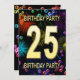Adicione um nome para personalizar este convite de festas exclusivo. 25 convite de aniversário com fogos de artifício e bolhas. Adicione seu dentro de detalhes para criar um convite divertido perfeito. Acenda o céu com estes fogos de artifício gloriosos. Um convite para uma festa de aniversário que tem estilo e muita diversão.