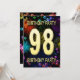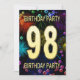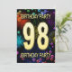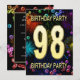 Adicione um nome para personalizar este convite de festas exclusivo. 98º convite de aniversário com fogos de artifício e bolhas. Adicione seu dentro de detalhes para criar um convite divertido perfeito. Acenda o céu com estes fogos de artifício gloriosos. Um convite para uma festa de aniversário que tem estilo e muita diversão.