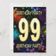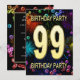 Adicione um nome para personalizar este convite de festas exclusivo. 99º convite de aniversário com fogos de artifício e bolhas. Adicione seu dentro de detalhes para criar um convite divertido perfeito. Acenda o céu com estes fogos de artifício gloriosos. Um convite para uma festa de aniversário que tem estilo e muita diversão.