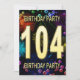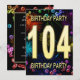 Adicione um nome para personalizar este convite de festas exclusivo. 104º convite de aniversário com fogos de artifício e bolhas. Adicione seu dentro de detalhes para criar um convite divertido perfeito. Acenda o céu com estes fogos de artifício gloriosos. Um convite para uma festa de aniversário que tem estilo e muita diversão.