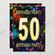 Adicione um nome para personalizar este convite de festas exclusivo. 50º convite de aniversário com fogos de artifício e bolhas. Adicione seu dentro de detalhes para criar um convite divertido perfeito. Acenda o céu com estes fogos de artifício gloriosos. Um convite para uma festa de aniversário que tem estilo e muita diversão.