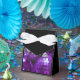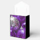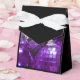 Caixa de presentes de na moda com uma coleção de bolhas de Natal roxas e prateadas. Um design personalizável para você personalizar com seu próprio texto, imagens e ideias. Imagem criada usando uma fotografia original e técnicas digitais.