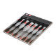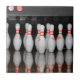 Um azulejo cerâmico com foto de um rack de pinos de boliche.