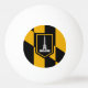 Ping Pong Ball com bandeira da cidade de Baltimore, Maryland; bandeira negra e amarela com uma ilustração do Monumento de Batalha