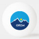 Ping Pong Ball com um design com a bandeira de Orem, Utah. Uma bandeira azul, branca e amarela com picos de montanha e o sol no centro