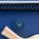 Ícone de beisebol com dois morcegos e uma bola sobre um escudo azul. Texto personalizado no verso.