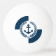 O design temático náutico com âncora e o louro envolvem a decoração sobre o fundo geométrico azul e branco