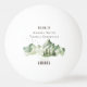 Pintura de paisagem em aquarela de árvores, pássaros voando e montanhas ao fundo. Ilustração calma e serena da natureza com pinheiros e silhuetas de pássaros voando. Tenha bolas de pingue-pongue personalizadas da equipe da noiva ou da equipe do noivo. Um ótimo presente para a festa de casamento para o fim de semana de solteiro ou despedida de solteira cheio de diversão e jogos.