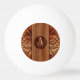 Um Design magnífico com uma banda central de madeira simples rodeada de um padrão arredondado triangular em madeira talhada e trabalhada com tons de madeira contrastantes. No centro, seu monograma é exibido em círculo com letras magníficas entrelaçadas como se fossem gravadas na madeira. Acessório muito refinado, esta bola vai adicionar um toque decorativo chic ao seu equipamento de ping-pong.