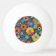 A vibrant and playful pattern featuring stylized flowers and circles in a retro color palette. The design evokes a sense of 1960s/1970s aesthetics.