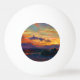 Um design de arte de um belo pôr do sol também mostrando rochas, praia e um homem pescando.