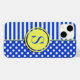 Bolinhas reais de combinação azul e estrias-monogramas Case-Mate mal existe o gabinete Apple iPhone 14. Imagens Copyright © Shirley Taylor. Todos os Direitos Reservados.