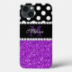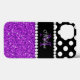 Brilhante Roxo (EFEITO IMPRESSO) com Bolinhas brancas em um plano de fundo preto, com seu nome e sua inicial. Elke Clarke © para a Galeria de Monogramas na Zazzle. Uma faixa preta tem uma borda de uma linha impressa de diamantes brancos. TRENDY, CHIC, LEGAL DESIGN PARA ELA, A TRENDSETTER, A FASHIONISTA. Outras cores disponíveis no nosso compro em www.zazzle.com/monogramgallery