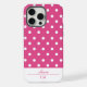 Adicione um toque de charme lúdico ao seu telefone celular com este gabinete chic iPhone 15 Pro Max com um padrão de bolinhas branco e rosa. Projetado para aqueles que amam um estilo divertido e feminino, este difícil caso protetor também é personalizável para torná-lo exclusivamente seu. Personalize-o com o seu primeiro nome numa bela escrita, e adicione as suas iniciais num monograma de na moda para uma dose extra de sofisticação. Também faz um presente excelente para aniversários e todas as ocasiões.