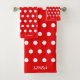 Bolinhas brancas no conjunto de toalhas de banho vermelho. O texto do nome pode ser personalizado.