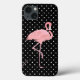 Adicione um estilo decorativo ao seu gabinete de ar iPad com esta divertida caixa de flamingo. Gráficos de padrão de bolinhas preto e branco como fundo, com um flamingo rosa pálido, no meio. Personalize o texto cor-de-rosa, no fundo, para você mesmo ou como uma ideia de presente divertida.