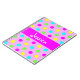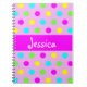 Design gráfico de bolinhas coloridas em um fundo cor-de-rosa com uma listra cor-de-rosa corajosa nela, onde você pode escrever seu próprio nome.