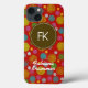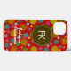 Personalize este item de moda na moda com seu próprio nome e letras iniciais. É a imagem de um padrão de polkadots colorido com um monograma arredondado
