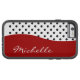 Maleta moderna de smartphone de bolinhas monograma com padrão de bolinhas preto e branco, que está em voga e na moda, e permite que você carregar seu celular em um estilo tão único quanto você.