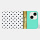 Este modelo personalizável de fita dourada, verde-ciano-turquesa, bolinhas de matiz turquesa e cor-de-rosa é o acessório perfeito para elevar o seu telefone celular e fazê-lo sobressair da multidão. O design de captura de olhos apresenta um padrão de bolinhas azul-ciano, azul-turquesa claro, que certamente vira cabeças. Este caso é perfeito para qualquer pessoa que queira adicionar um toque de classe e estilo ao seu telefone, ao mesmo tempo que o mantém seguro do uso diário. Esta capas de iphone apresenta um vibrante e atraente design de matiz azul-verde-ciano turquesa e padrão branco de bolinhas pretas. Você pode personalizar esta capas de iphone com seu nome ou iniciais para torná-la um acessório personalizado e exclusivo. Esta capas de iphone é perfeita para qualquer um que ama artigos de na moda e moda. Se você tem um pedido especial para uma imagem diferente, mensagens e qualquer outra coisa com um produto que o Zazzle oferece que eu não criei me sentir livre para entrar em contato comigo através da opção de contato.