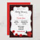 Convite do chá de fraldas com tema bonito do joaninha e fundo das bolinhas.