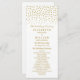 Estes Cartões do Programa de Casamento de Bolinhas Dourados são perfeitos para qualquer casal planejando uma celebração de casamento alegre. O design elegante pode ser personalizado para se adequar ao seu evento especial e será a ordem de serviço perfeita para qualquer partido moderno, incluindo chás de panela, noivados, chás de casamento, festas de aniversário e muito, muito mais.