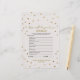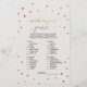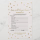 Esta bolinhas de ouro "como você conhece a noiva" é perfeita para um chá de panela elegante. A frente do cartão de jogo apresenta "como você conhece bem a noiva", e a parte de trás do cartão contém "o que há na bolsa". O simples design apresenta um confete de ouro cônico sobre um fundo de champanhe cremoso com uma bela caligrafia de folha de ouro falsa. Personalize a parte frontal da placa com o nome da noiva e a data do chá de panela. Nota: Este design não apresenta folha de ouro real. É um gráfico de alta qualidade feito para se parecer com folhas de ouro.