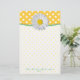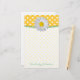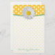 Papel de carta personalizado bonito feito no branco com bolinhas amarelas. A parte superior dos artigos de papelaria é feita no amarelo brilhante, com um gel verde que olha a borda e uma única margarida branca no meio. Personalize o texto verde na parte inferior do papel para serir suas necessidades.