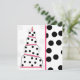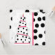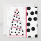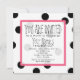 Um convite de aniversário com um esquema de cor rosa, preto e branco. Frente apresenta uma ilustração de um bolo de aniversário com quatro arredondados em níveis centrados. Cada camada é rosa claro no topo com linhas rosa-quente e pretas no centro e bolinhas pretas sobre branco no fundo. Vela em cima. O fundo é bolinhas cor-de-rosa. A imagem lateral corresponde à parte inferior do bolo. A imagem traseira corresponde ao lado. Personalize com detalhes do seu evento.