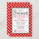 Na moda doce dezesseis convites de aniversário com bolinhas brancas sobre vermelho. Personalize com os detalhes da festa e escolha o tipo de papel também!