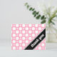 Obrigado postais com um padrão de bolinhas variado com tamanhos alternados de círculos brancos sobre um rosa no estilo cafe. O "obrigado que você" está impresso em branco na diagonal na frente, sobre uma faixa preta na diagonal, no canto inferior direito. A parte traseira é impressa por personalização com seu próprio texto, ou pode ser facilmente deixada a letra do vazio escrevendo seus próprios sentimentos de obrigados. Esse esquema de estilo e cor faz desses cartões uma escolha apropriada para Chás de panela, Chás de fraldas e Aniversários, ou qualquer ocasião para dizer obrigados. São aplicáveis descontos em massa. Sem ordem mínima.