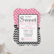 Estilo de suporte, na moda doce 16 convites de aniversário com bolinhas brancas sobre cor-de-rosa na metade superior e um padrão zigzag chevron preto e branco na metade inferior. Personalize com os detalhes da festa e escolha o tipo de papel também!