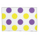 Um gabinete de travesseiro de bolinhas roxo e amarelo com um padrão colorido de grandes círculos redondos de pontos amarelos e roxos para adicionar uma abertura de cor ao seu quarto.