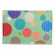 Estojo de travesseiro de bolinhas em pontos de cor mista, com fundo verde pontilhado.