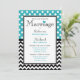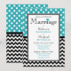 Convites de na moda com bolinhas brancas sobre turquesa no topo e um padrão zigzag chevron preto e branco no fundo. Personalize com os detalhes da cerimônia e da recepção e escolha o seu tipo de papel também!