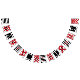 Esta bandeira bonito da estamenha é perfeita para festas de aniversário, chás, festas de aniversário e toda a outra celebração. Três padrões são indicados; um com as bolinhas vermelhas e brancas e dois outro com versões diferentes de listras preto e branco. Você personaliza a rotulação.