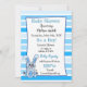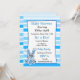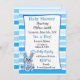 Adorável convite de chá de fraldas de coelho bonito listrado azul riscado.