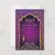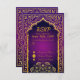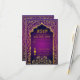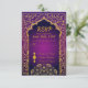 Bollywood ou Arabian Nights teme cartão RSVP de casamento em ombre roxo com sotaques de folha de ouro.