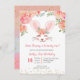 Alguns Bunnies estão fazendo um convite de aniversário. Convite Floral Bunny Pink.