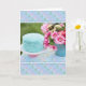 Cartão de aniversário com um belo bolo azul e margaridas. Altere a mensagem dentro para ajustado da sua ocasião.
