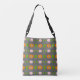 Uma série de diferentes geometria, padrão em uma cinza, faz um design artístico para sua bolsa de corpo cruzado.