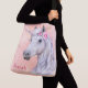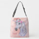 Imagem surpreendente em um saco de cruzamentos de um unicórnio com um rosa e um fundo cor-de-rosa de ouro brilhante. Clique em "Personalizar" para personalizar com seu próprio nome ou monograma.