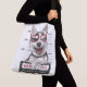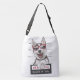 Imagem deliciosa em um saco de cruzamentos de um cão rouco Siberiano ou do Alasca piscando durante uma fila policial. Faz um saco de carrinho de excelente, bolsa ou saco de compras de mercearia.