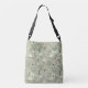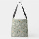 Flores brancas e pastéis em um fundo verde-sábio fazem uma bolsa doce e feminina de corpos cruzados. Perfeito para quem ama flores e natureza.
