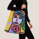 Minha pintura abstrata colorida de uma mulher torna essa linda bolsa tote uma obra de arte funky para carregar!