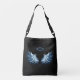 Bolsa Ajustável Asas Anjos Azuis Brilhantes em fundo preto